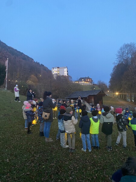 Begleitet von all ihren Lieben machten sich die Kinder auf den Weg Richtung Museum, rund um den Ententeich und wieder zurück zur Schule. Die selbstgemachten Sternenlaternen funkelten mit den Sternen am Himmel um die Wette. Auf mehreren Stationen gaben die Kinder Lieder und Gedichte zum Besten. Zum Schluss durften sich alle Kinder mit selbstgemachten Kipferl stärken. Großer Dank an Verena Schnegg, Linda Jetzbacher und Petra Kellner!